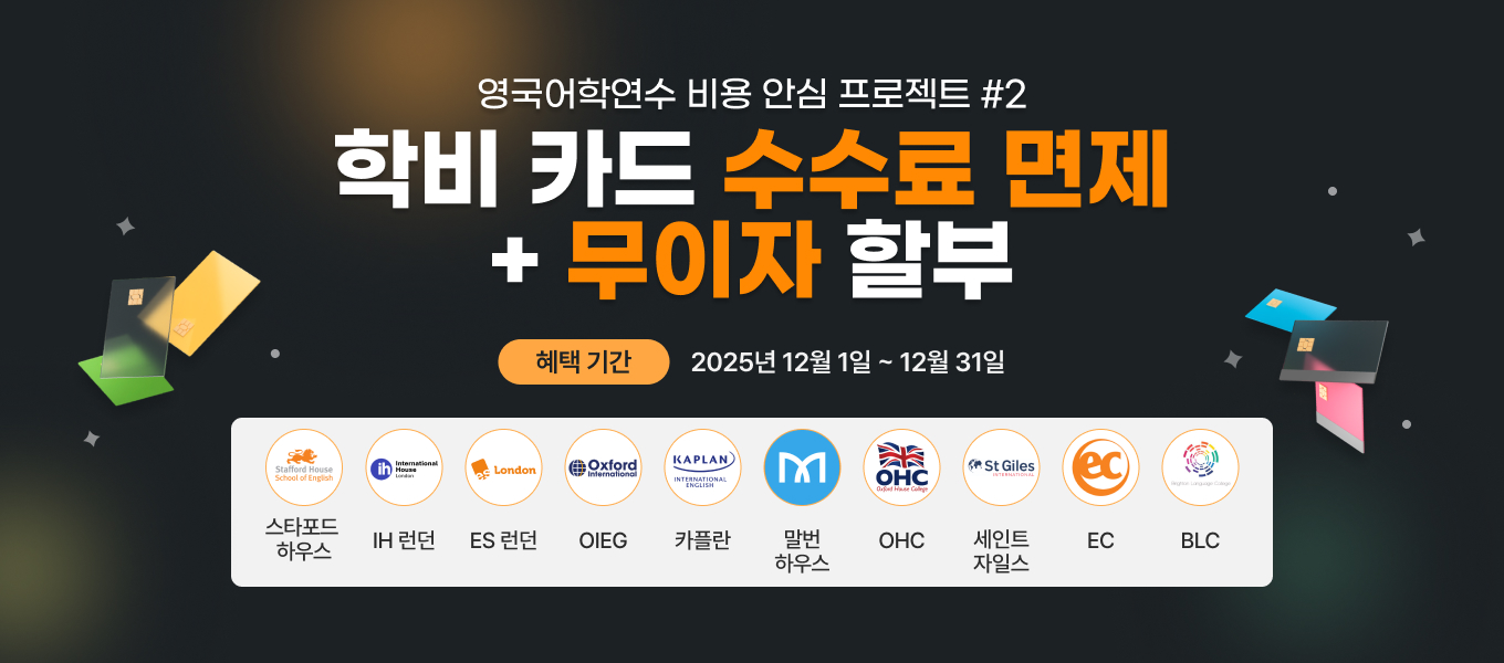 영국대학교 합격자 현황 실시간으로 업데이트되는 영국대학교 합격자 리스트 ★영국어학연수 풀서포트 프로모션★ 영국전문가가 출국 준비부터 귀국까지!쉿! 비밀 혜택 적용 학비 문의 필수 영국약대 준비 프로젝트 영국약대 지원부터 입학까지 함께하는 약대 프로젝트모든 서포트 무료 제공(원어민수업/인터뷰지원) 영국어학연수 학교 검색 가격별 | 지역별 | 코스별 | 숙소별 | 특징별영국 어학원 검색하기 영국유학 수능상담 FRIDAY 수능이 끝난 지금, “영국 유학을 진지하게 준비해볼까?” 고민 중이신가요?매주 금요일 오후 3시부터 6시까지「영국유학 수능상담 FRIDAY」! 영국어학연수 멀티 서포트 영국어학연수 끝날때까지 계속되는 서포트한국지사/런던지사의 학생서포트 후기