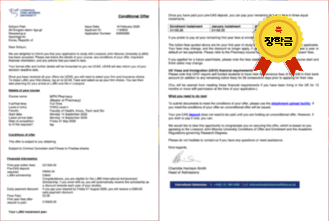 리버풀존무어스대학교 약대 MPharm 1학년 입학