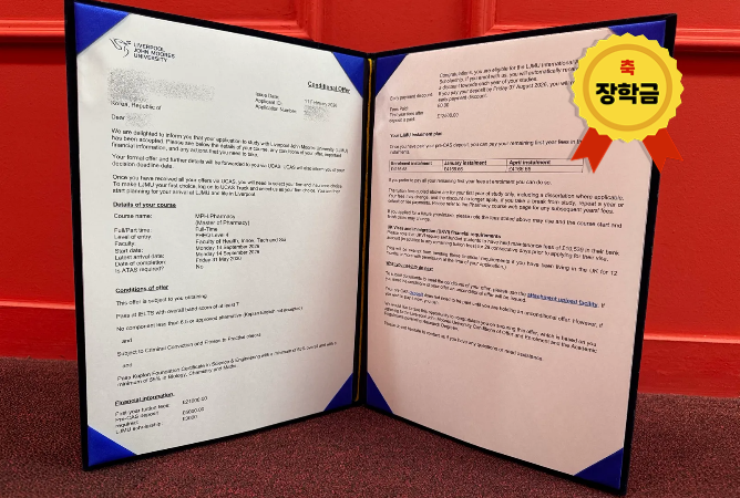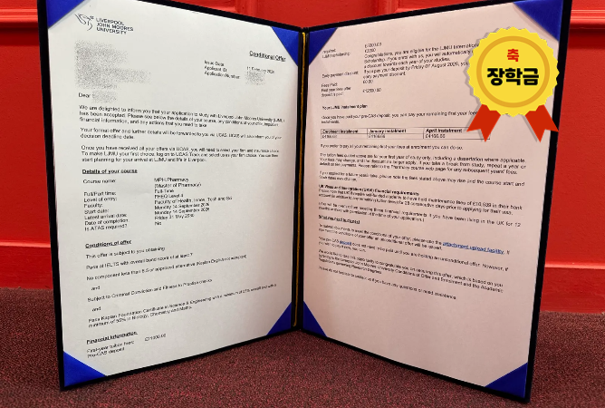 Liverpool John Moores University [26년 9월 시작] 장** - 리버풀존무어스대학교 약대 1학년 합격#UCAS 국내대학교 행정학 졸업 + 영국 현지 러셀그룹 대학교 부설 약대 파운데이션 재학 중, UCAS 지원무료 서포트 : 유카스 지원서 작성 + 자기소개서 검토 + LJMU 약대인터뷰 모의 질문지 제공 Liverpool John Moores University [26년 9월 시작] 안** - 리버풀존무어스대학교 약대 1학년 합격#UCAS 국내고 이과 4.x등급으로 졸업 + 영국 현지 타대학교 부설 약대 파운데이션 재학 중, UCAS 지원무료 서포트 : 유카스 지원서 작성 + 자기소개서 검토 + LJMU 약대인터뷰 모의 질문지 제공 De Montfort University [26년 9월 시작] 신** - 드몽포트대학교 약대 1학년 합격#UCAS 국내고 이과 평균 80%이상 성적으로 졸업 + 영국 현지 타대학교 부설 약대 파운데이션 재학 중, UCAS 지원무료 서포트 : 유카스 지원서 작성 + 자기소개서 검토 + DMU 약대인터뷰 모의 질문지 제공 University of Nottingham [26년 4월 시작] 이** - 노팅엄대학교 약대 초단기 파운데이션 합격 국내 고등학교 이과 졸업+국내 대학교 동일계열 1학년 이수 후 약대 파운데이션 지원장학금 최대 4,000파운드+@ 획득 Liverpool John Moores University [26년 10월 시작] 이** - 리버풀존무어스대학교 약대 파운데이션 합격 국내 대학교 간호학과 졸업 후 지원26년 10월 시작 파운데이션 정원 15명 University of Sunderland [26년 9월 시작] 김** - 선더랜드대학교 약대 1학년 합격 #UCAS 검정고시 + 국내대학교 화학공학 학점 3.x로 졸업 + 7년 직장생활 중 지원 합격 + 장학금 획득무료 서포트 : 유카스 지원서 작성 + 자기소개서 검토 + 입학인터뷰 밀착 가이드 + 학생비자 지원