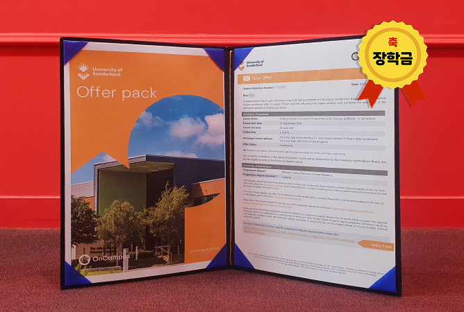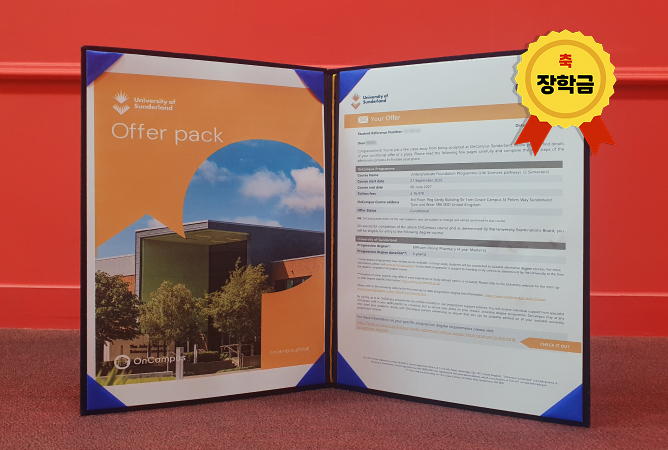 Newcastle University [26년 9월 시작] 박** - 뉴캐슬대학교 약대 파운데이션 합격 국내대학교 졸업 후 지원, 뉴캐슬대학교 약대 파운데이션 합격학비고정 최대 장학금 신청 예정 University of Sunderland [26년 9월 시작] 유** - 선더랜드대학교 약대 파운데이션 합격 26년 8월 검정고시 응시 계획으로, 선더랜드 약대 파운데이션 합격파운데이션 장학금 최대 획득 예정 University of Sunderland [26년 9월 시작] 홍** - 선더랜드대학교 약대 파운데이션 합격 국내대학교 간호학과 졸업 후 지원, 선더랜드 약대 파운데이션 합격파운데이션 장학금 최대 획득 예정 Newcastle University [26년 9월 시작] 홍** - 뉴캐슬대학교 약대 파운데이션 합격 국내대학교 간호학과 졸업 후 지원, 뉴캐슬대학교 약대 파운데이션 합격학비고정 최대 장학금 신청 예정 University of Sunderland [26년 9월 시작] 박** - 선더랜드대학교 약대 파운데이션 합격 검정고시 성적으로, 선더랜드대학교 약대 파운데이션 합격파운데이션 장학금 최대 획득 예정 University of Brighton [26년 9월 시작] 조** - 브라이튼대학교 약대 파운데이션 합격 검정고시 성적으로 지원, 브라이튼대학교 약대 파운데이션 합격장학금 £1,500 + 기숙사 신청시 추가 £1,500 획득
