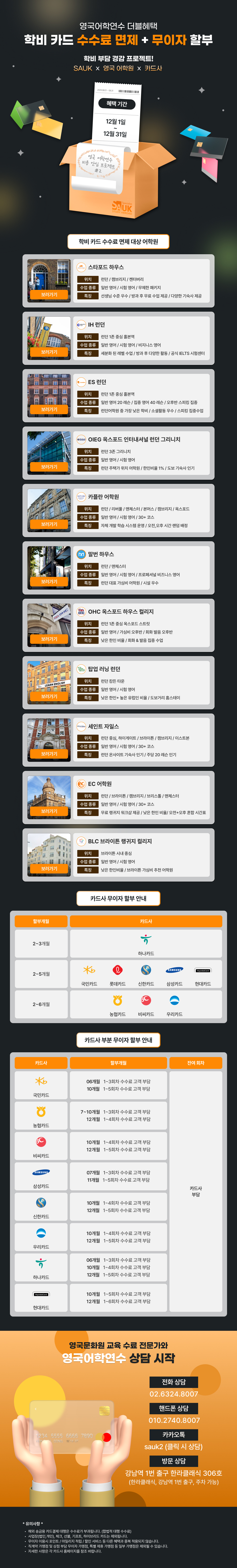 ★12월 학비 카드 수수료 면제 + 신용카드 무이자 할부 안내 - 영국어학연수★