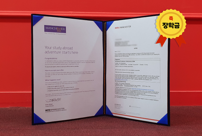 장학금 £5,000 로 12월 31일까지 보증금 송금 시 획득