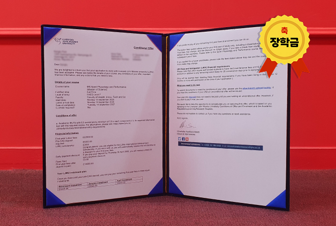 | 코멘트 | 리버풀존무어대학교 석사진학보장 프리마스터 Pre-Masters Programme • 리버풀존무어대학교내 ISC 에서 학업 • 1학기 단기과정으로 프리마스터+석사 비자 한번에 발급 • 프리마스터 4월 중순 시작 - 8월말 종료. 이어서 9월말 종료 입학요건 1. 아카데믹 : 학사 졸업자.학사 성적60% 2. 영어 : IELTS for UKVI 아카데믹 평균 5.5(모든영역 5.5) UKVI로 제출 X 3. 참고사항 : 아래 전공은 학부관련 정공자여야 함 Criminal Justice MA Global Crime, Justice and Security LLM International Business Corporate and Finance Law LLM International Corporate Law and Management LLM Investment and Finance MSc Law LLM Data Science MSc Electrical Power & Control Engineering MSc Embedded Systems and IC Design MSc International Transport Trade and Logistics MSc Investment and Finance (with Advanced Practice) 프리마스터 수강과목 진학하는 석사과정에 따라 아래 2가지 프리마스터를 제공 • Pre-Masters Programme in Business, Management and Law 필수과목 : Academic English and Research Skills, Global Business Management & Marketing Principles 선택과목 : Economics 또는 Law Studies • Pre-Masters Programme in Engineering and Computing 필수과목 : Academic English and Research Skills, Computing, Maths |