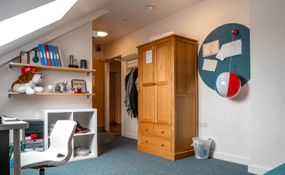 | 특징 | Parc House 대상: 7학년~10학년 컨셉: "따뜻한 가정집 분위기와 공동체 생활" 위치: 학교에서 약 3km 떨어진 역사적인 대저택 (전용 셔틀버스 운행) 특징: 어린 학생들이 향수병 없이 적응할 수 있도록 가족적인 분위기를 강조합니다. 방 형태: 주로 2인실(Twin) 또는 다인실을 사용하여 친구들과 어울리며 자연스럽게 영어를 익힙니다 (일부 1인실 있음). |